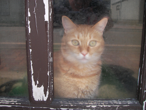 途中で見つけた「ドア越しの猫」。